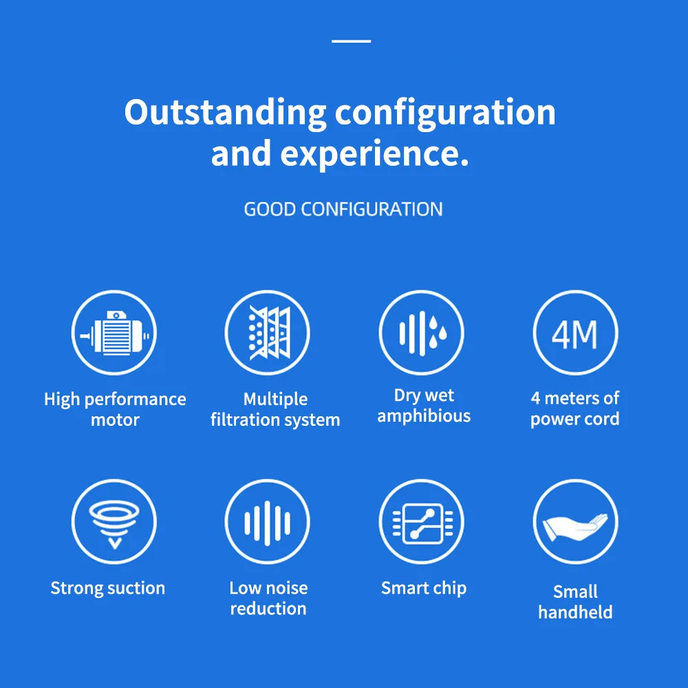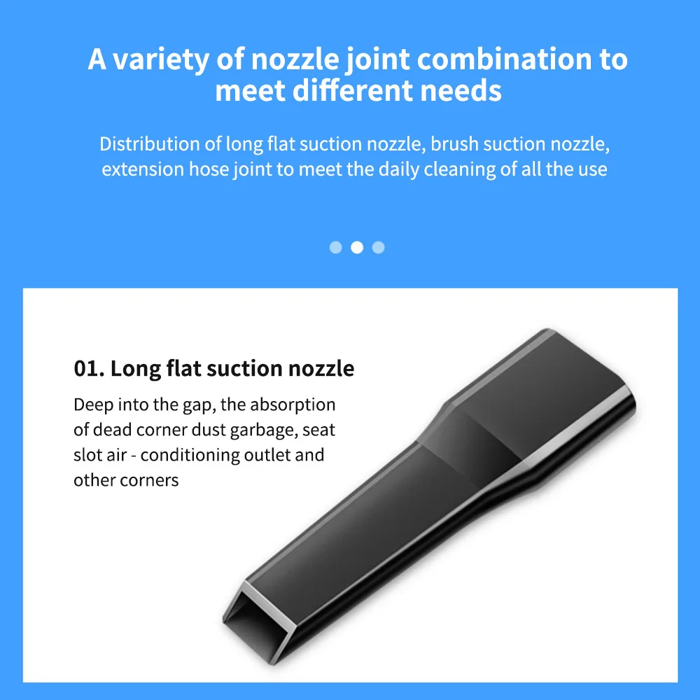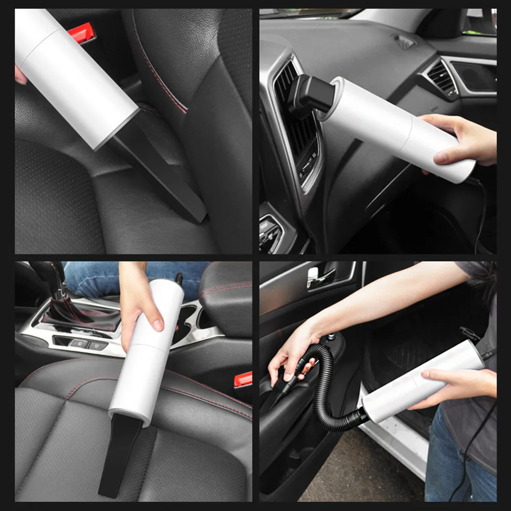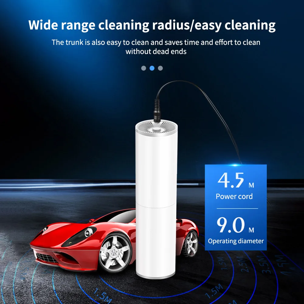 Product name: car vacuum cleanerSize: 21.5cm in height 5.4cm in diameterColors: White, BlackRated power: 120wAccessories: brush nozzle, long flat nozzleInput voltage: DC 12v